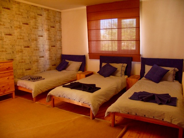This is an extra large room with three single beds. Two single beds can be moved together to form a double bed. There is also an option to add a foldable fourth bed.