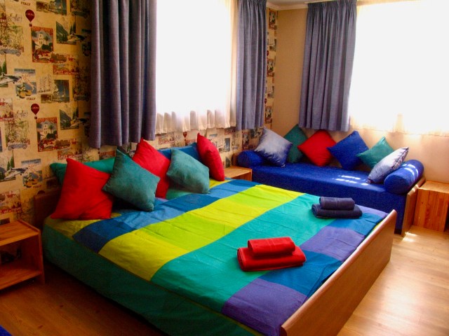 Room 1 and room 2 can be rented together to form a mini apartment. There is a shared seating area that is separated from the rest of the guesthouse. This option is ideal for families with children.